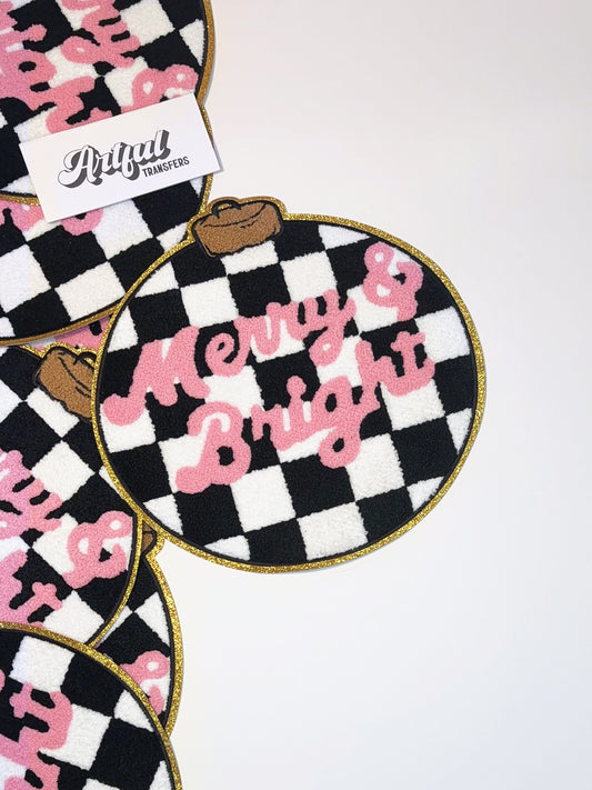 Merry & Bright Checkered Ornament - Chenille Patch