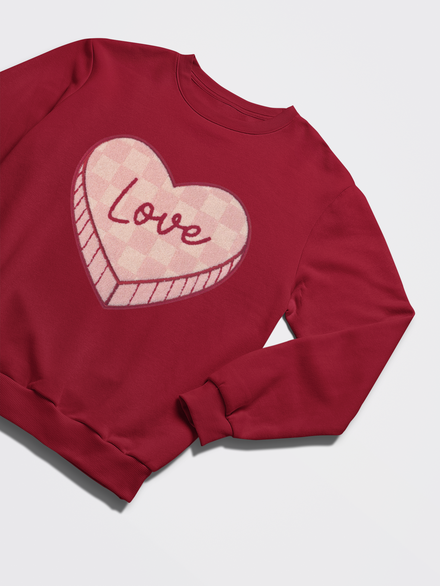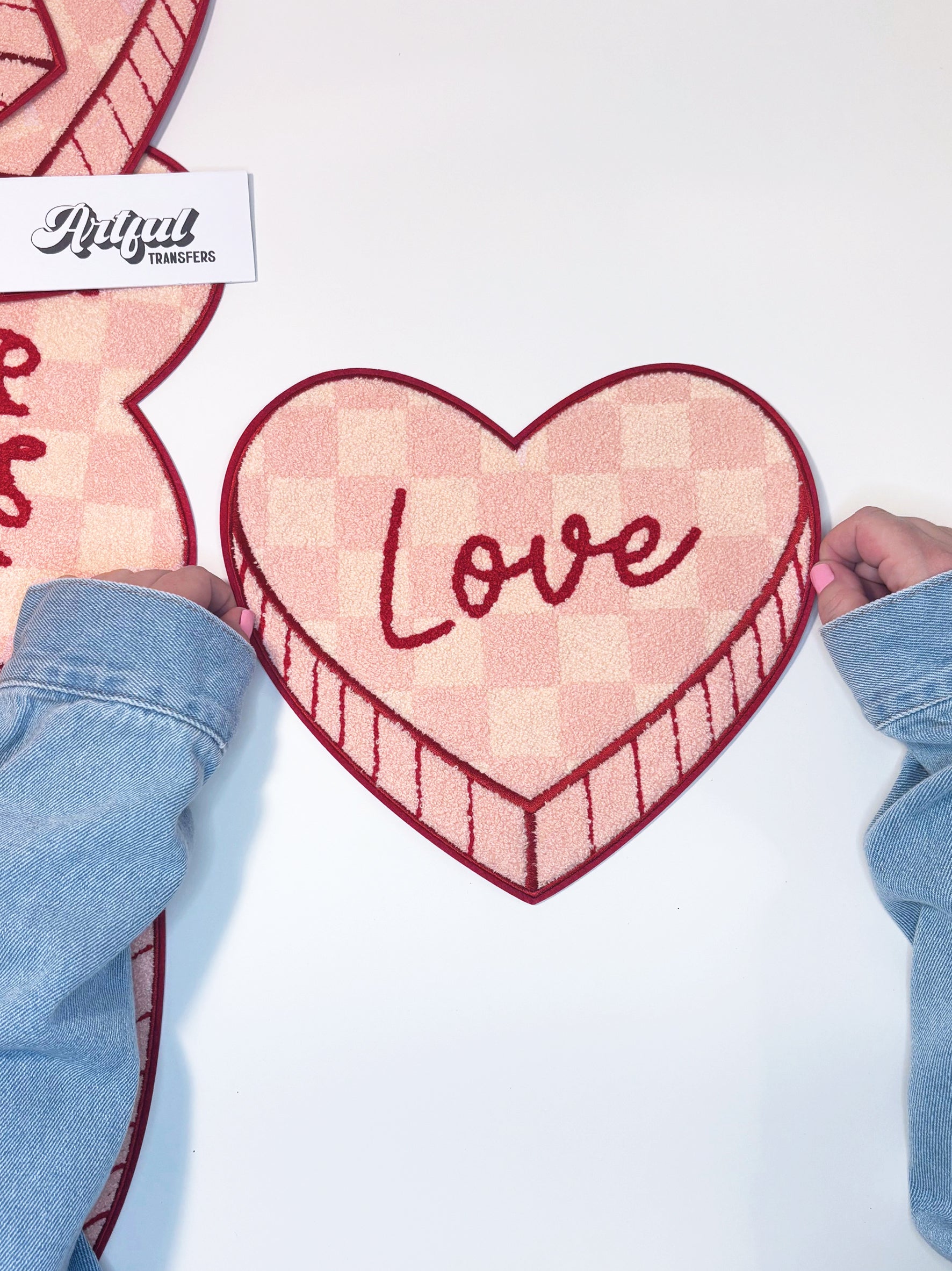 Checkered Pink Love Candy Heart - Chenille Patch with Embroidery Detail