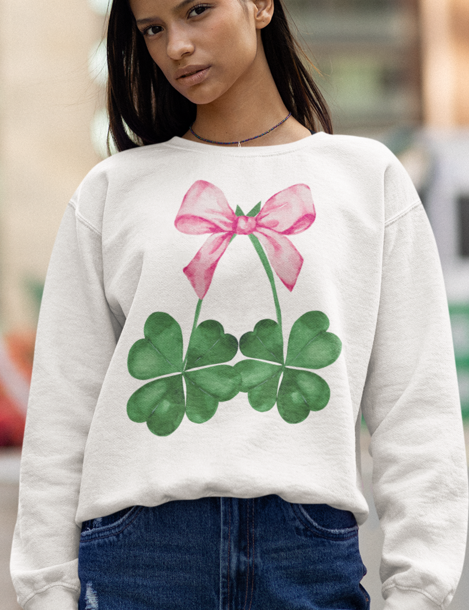Four Leaf Clovers with Pink Bow - DTF Transfer