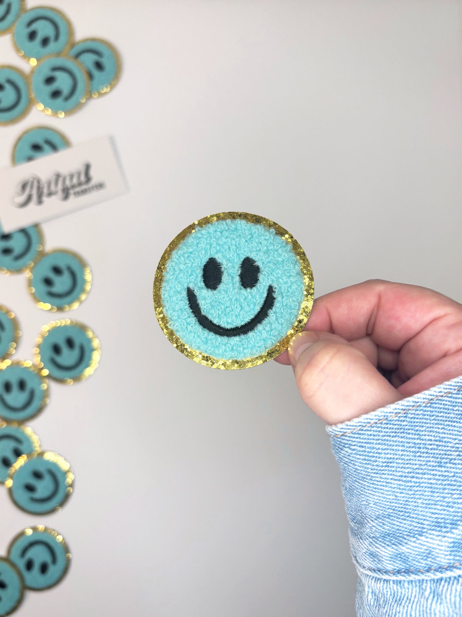 Smiley Chenille Patch in Blue - Chenille Patch